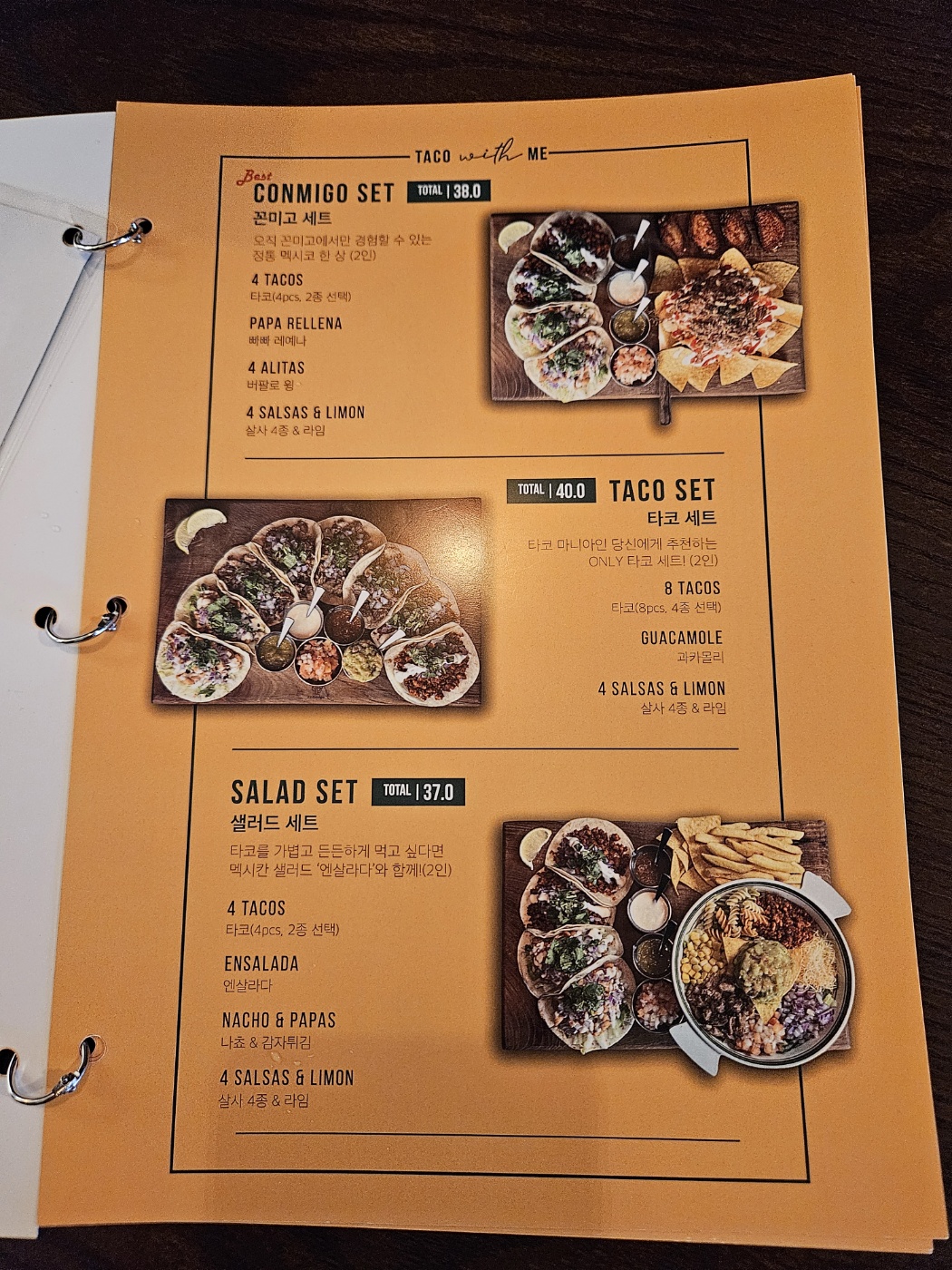 [꼰미고 세트, 타코 1개, 꼰미고 직원식, 음료 3개]