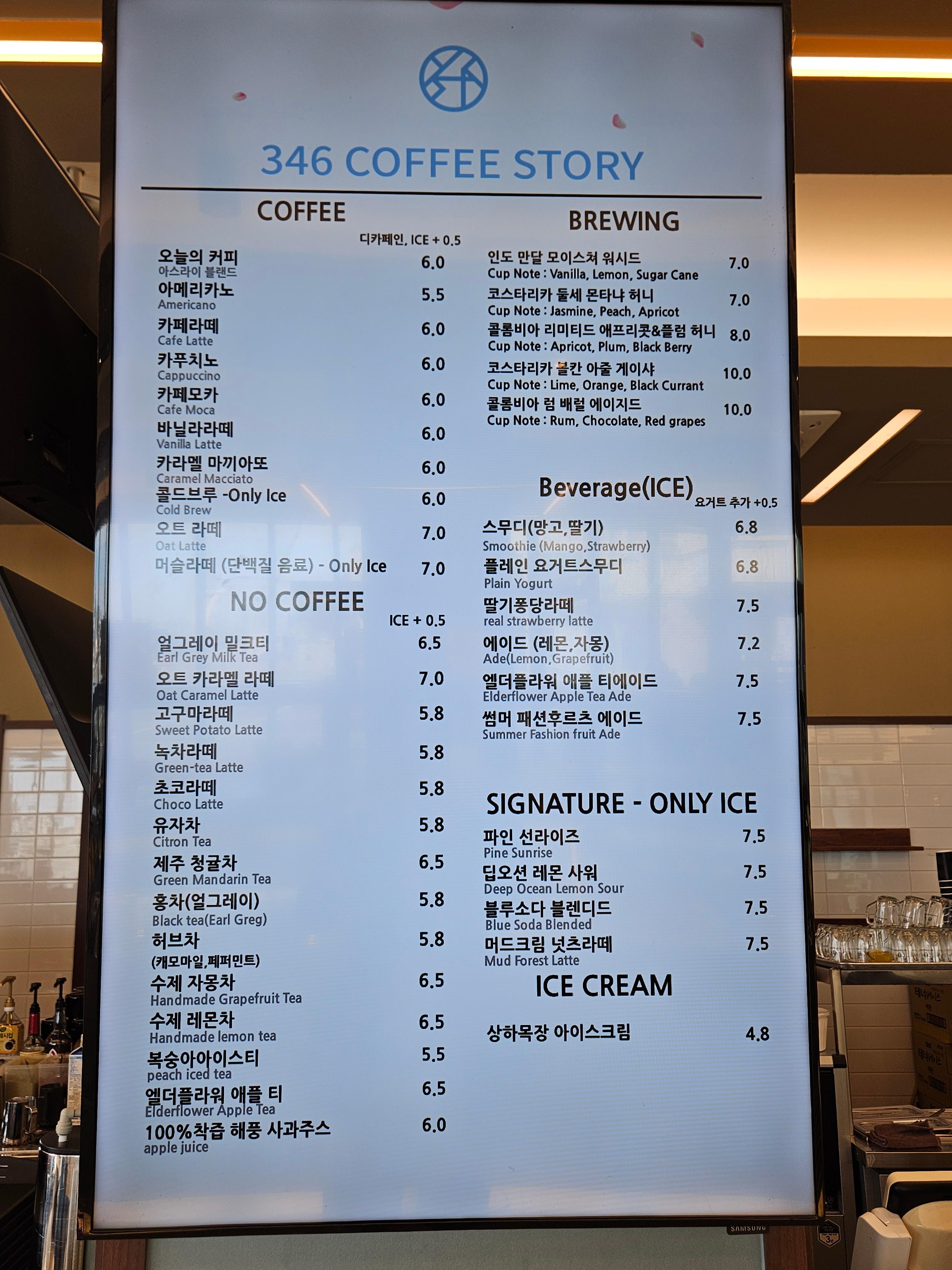 근데 커피 가격이 다 같은 것도 신기했어요.