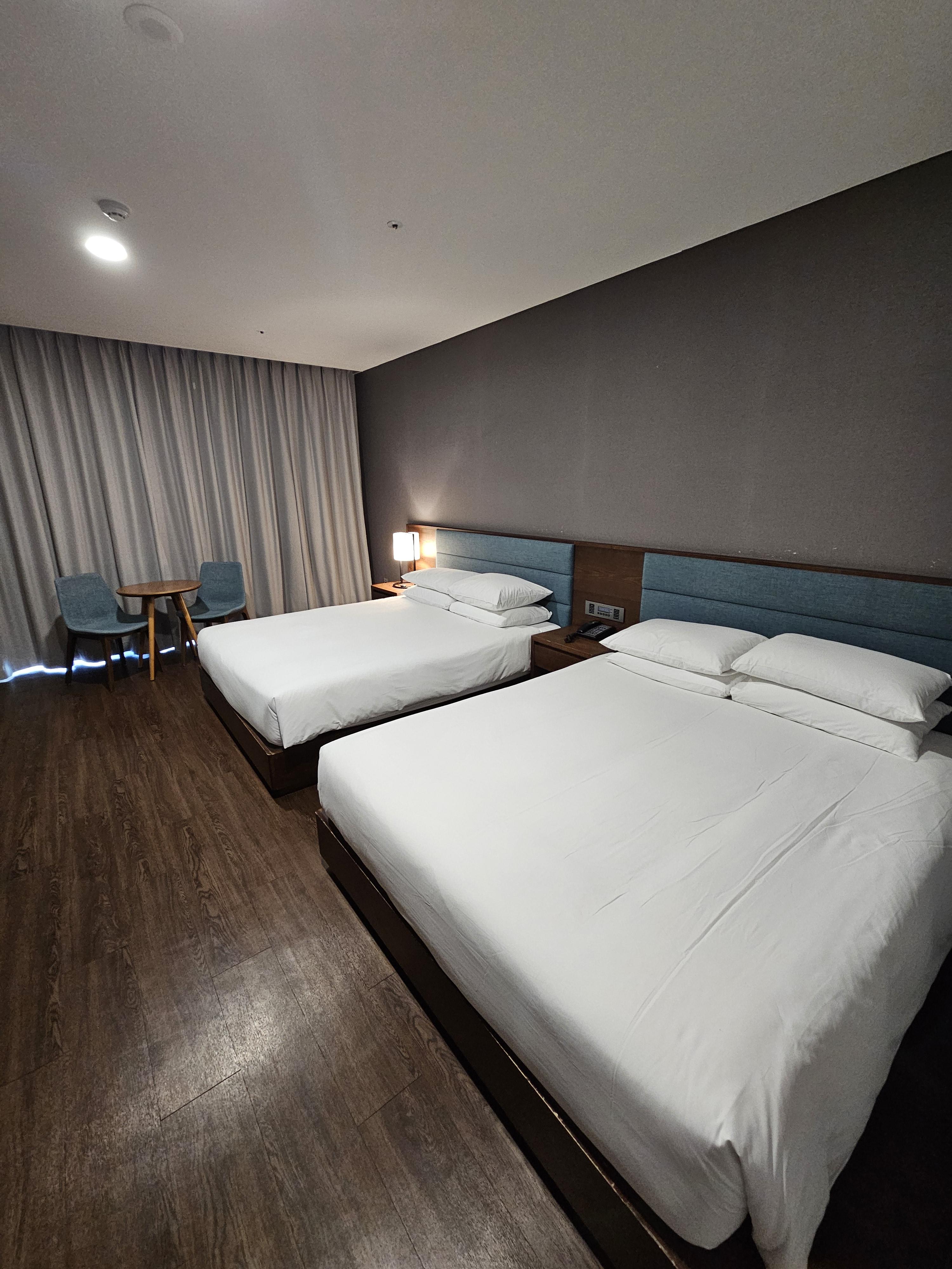 저희가 묶은 방은 디럭스 더블룸으로 킹사이즈 침대 2개가 있는 방입니다.