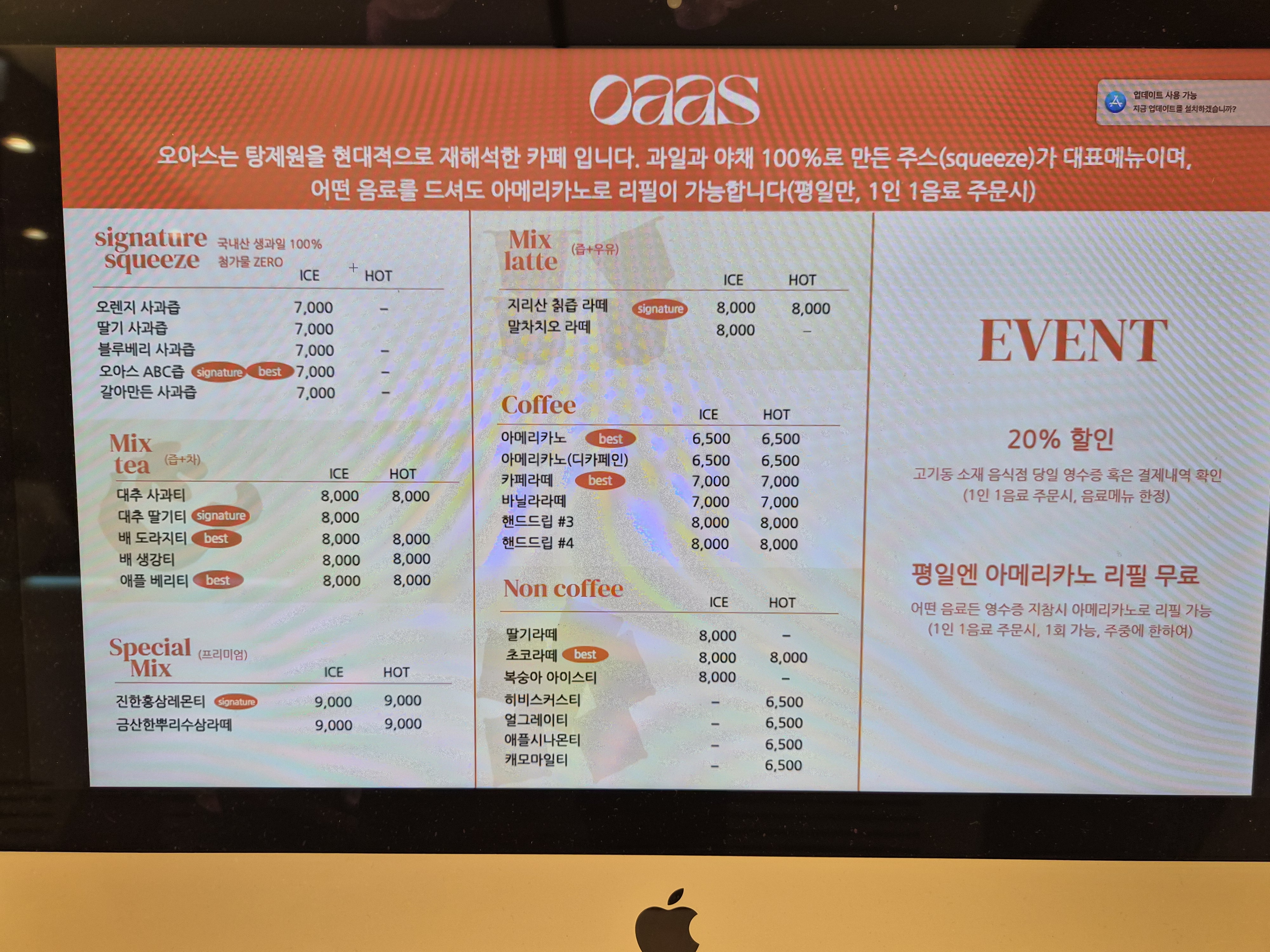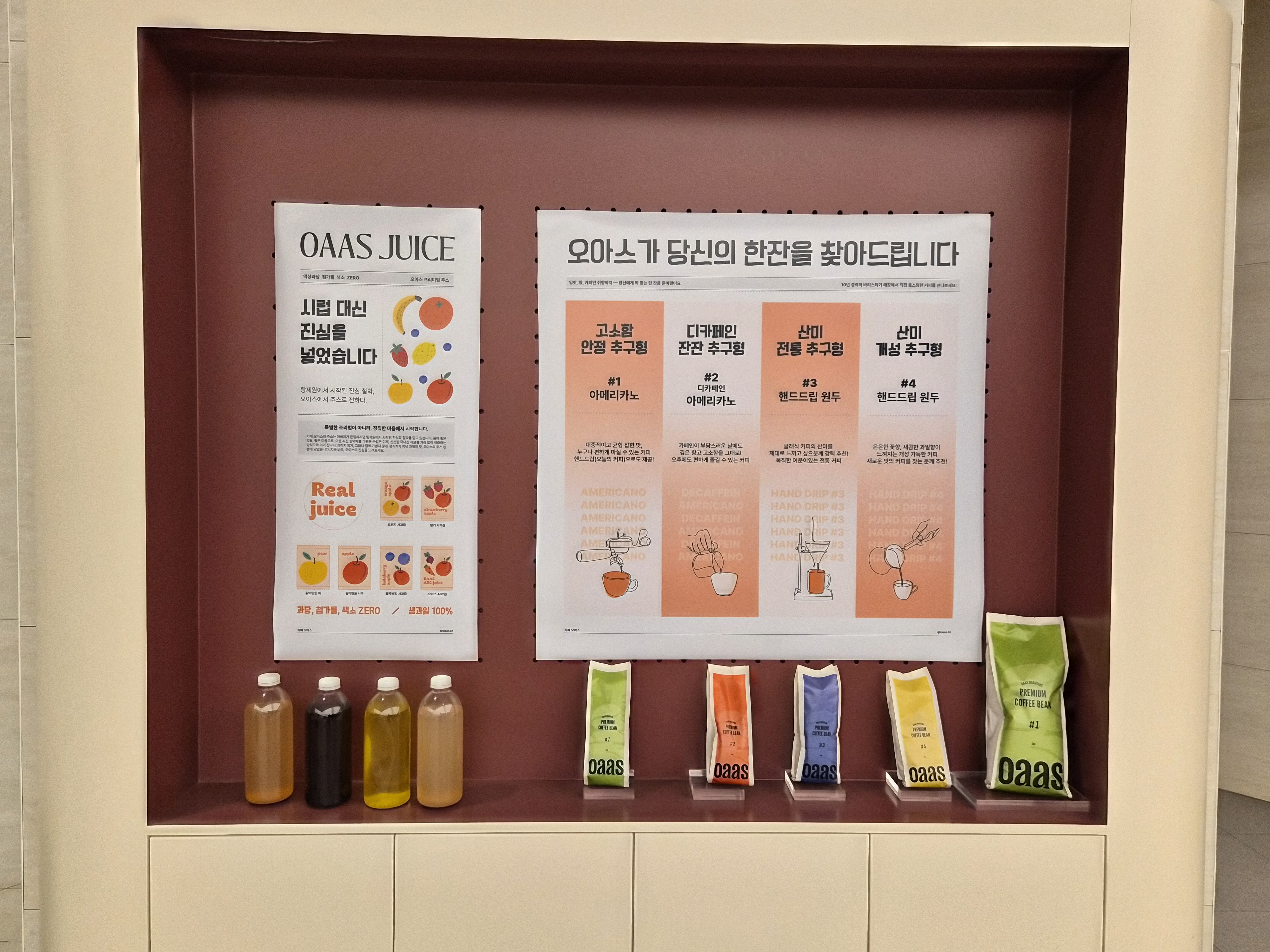 오아스는 음료에 좀 진심이 있는 듯 했어요.