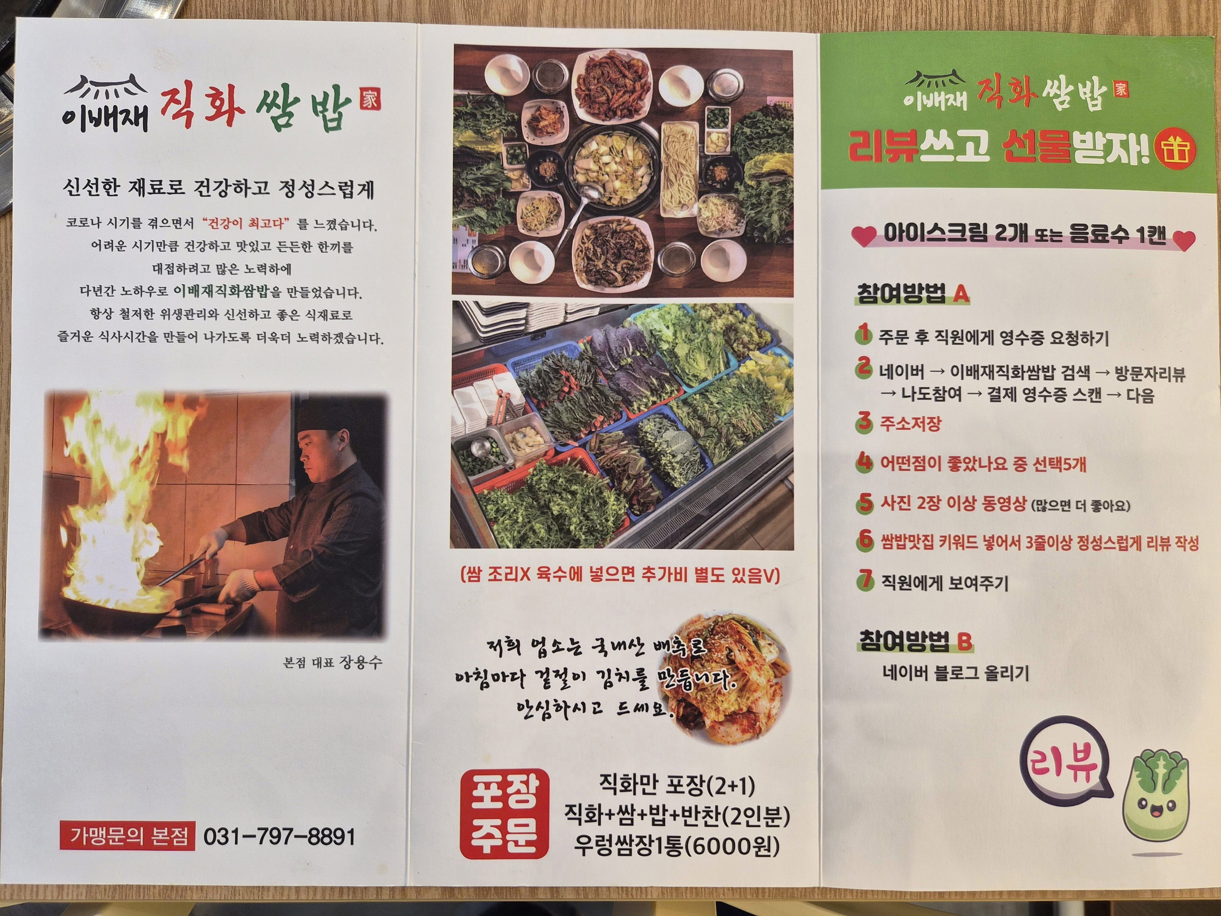 고기리에 새로생긴 이배재직화쌈밥집 다녀왔어요.