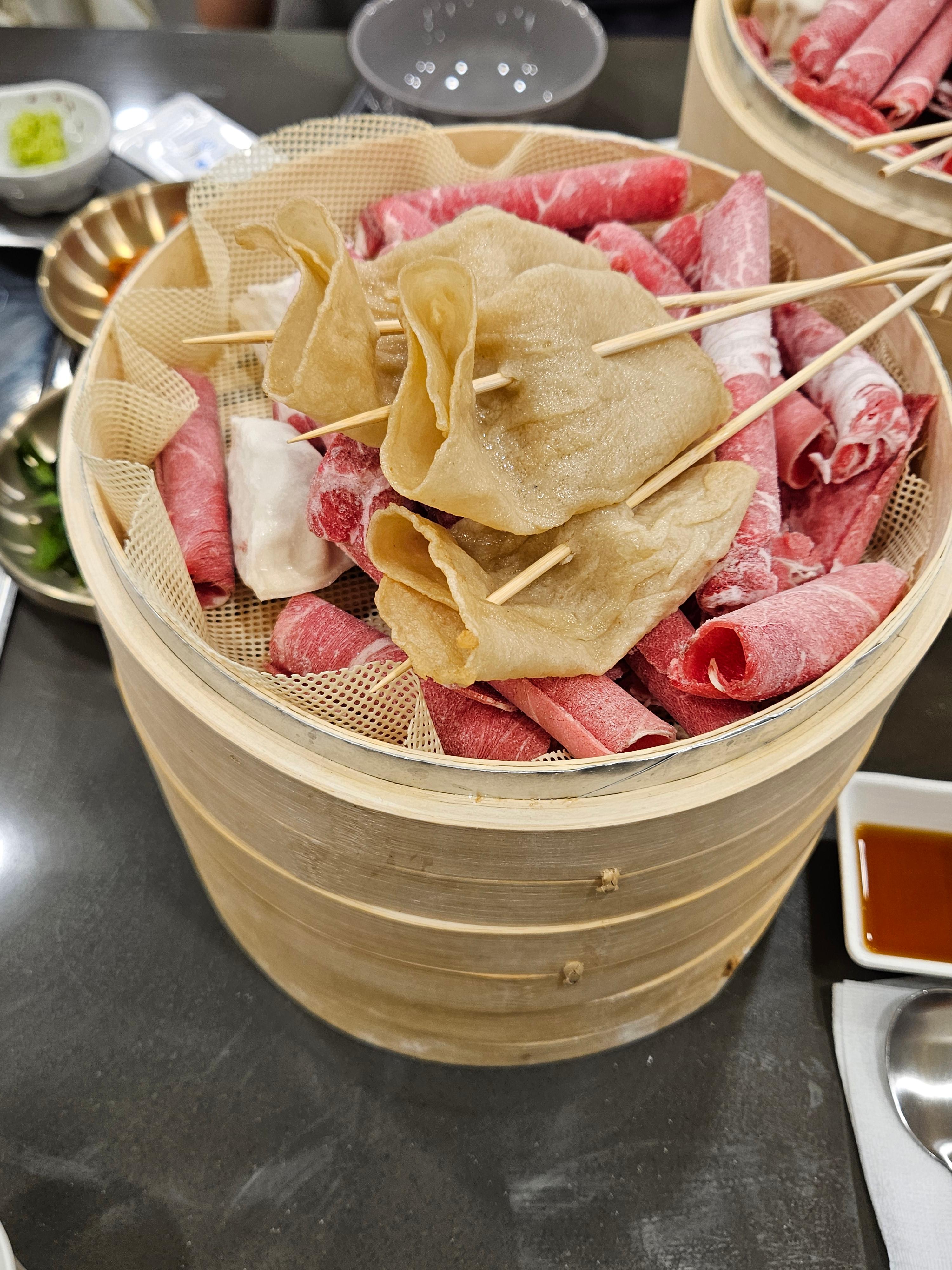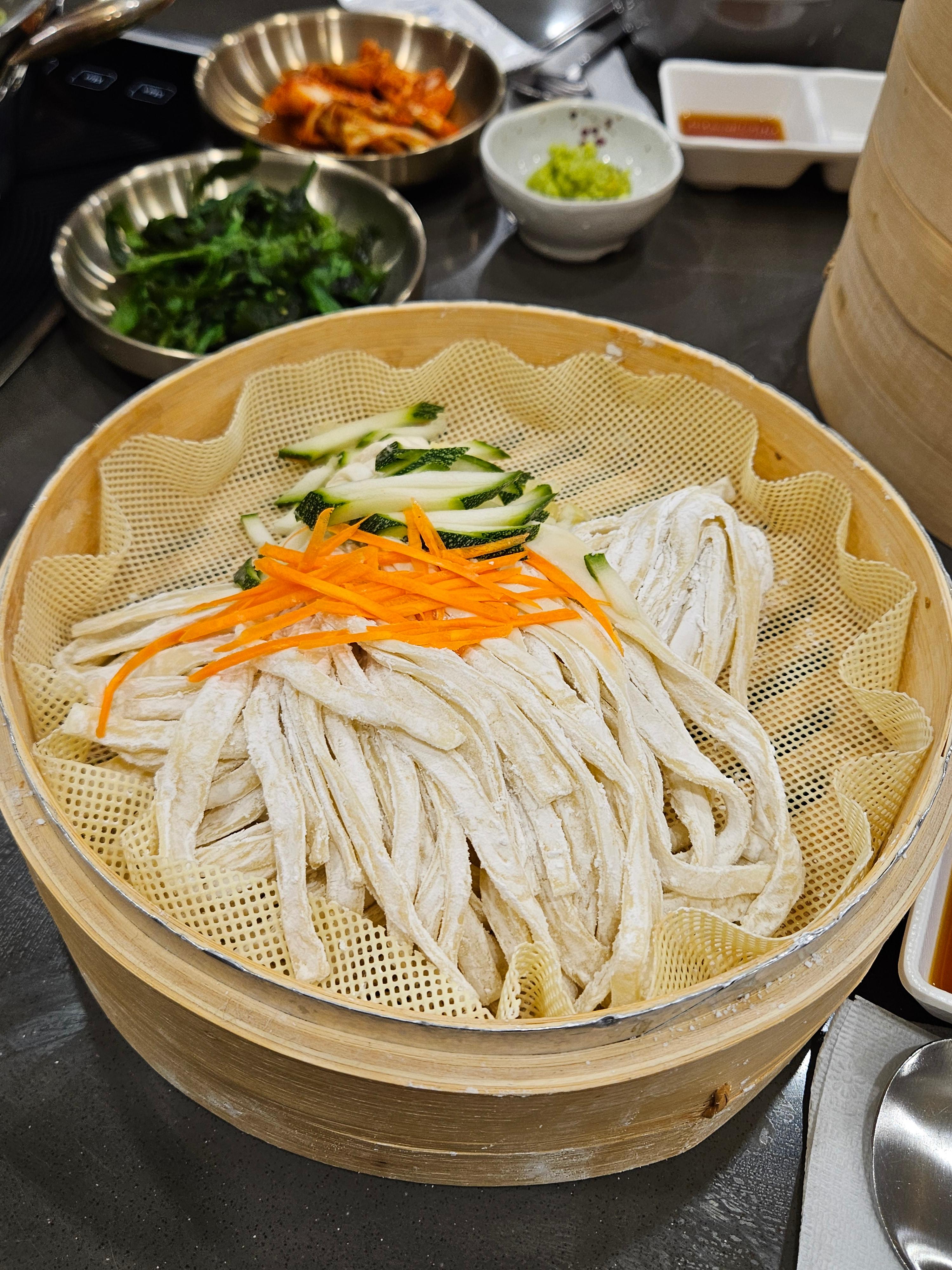 샤브샤브처럼 고기, 어묵, 채소, 칼국수를