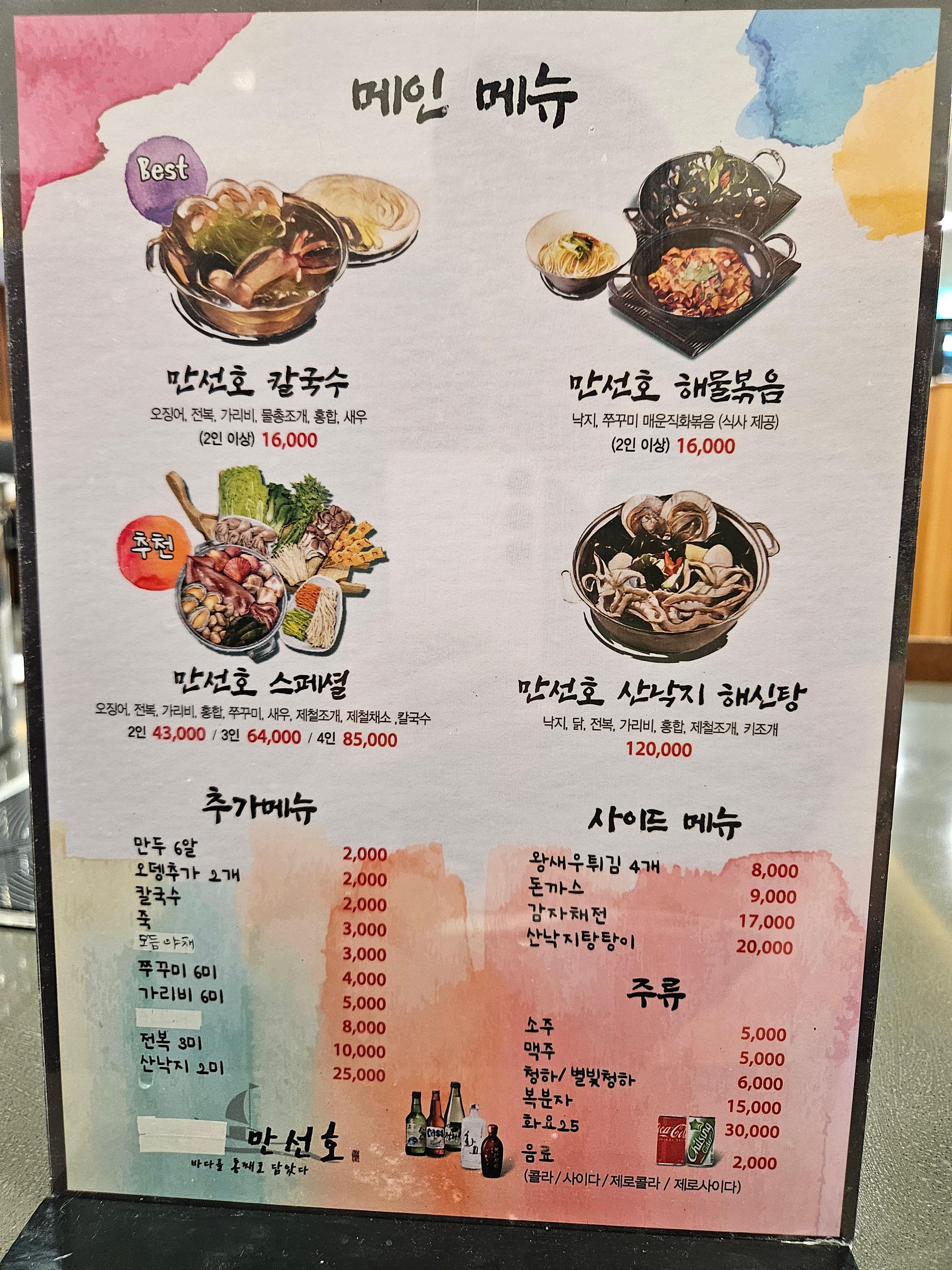 만선호는 칼국수로 유명한것 같았어요.