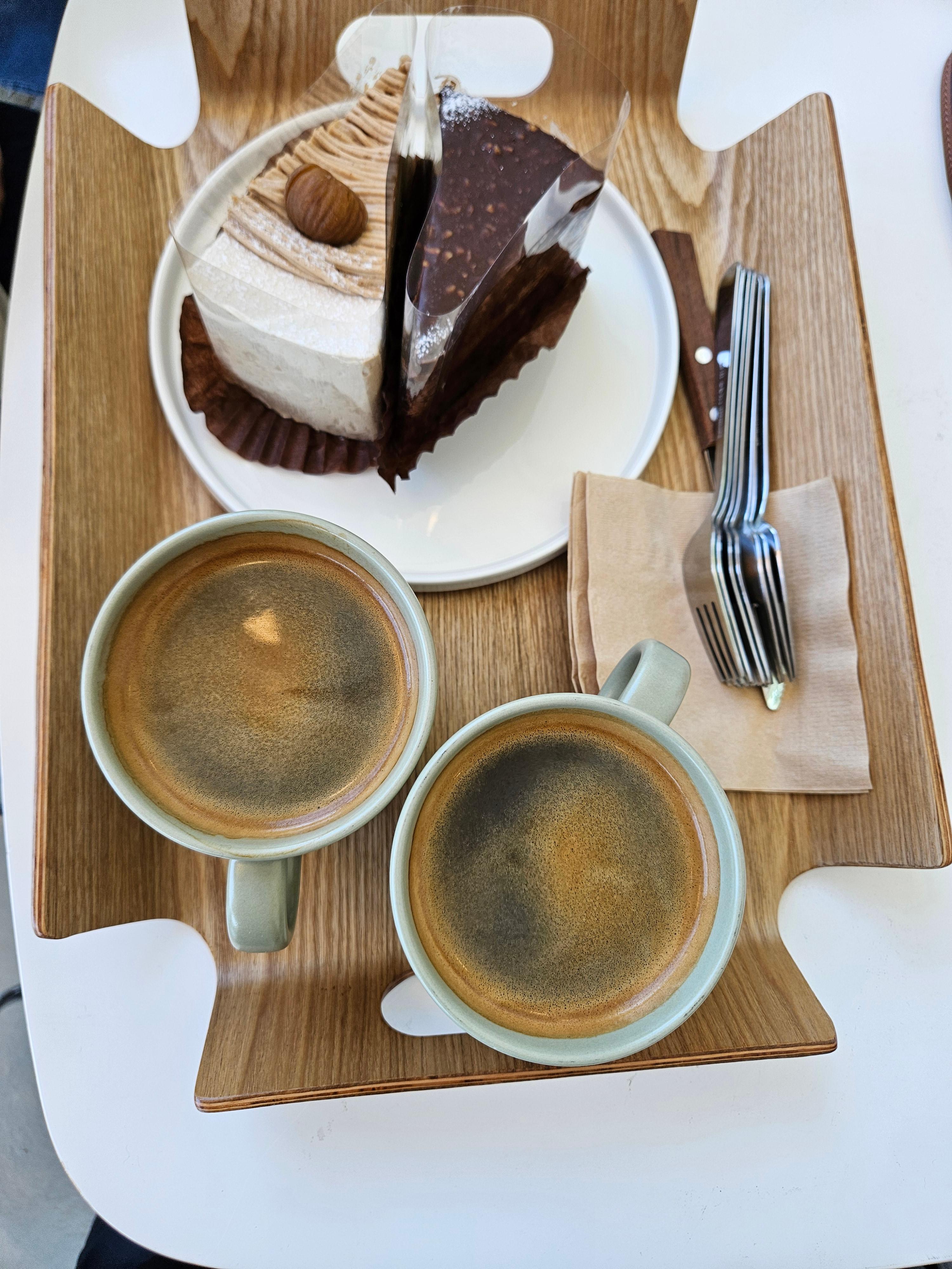 따뜻한 아메리카노 1잔, 조각케이크 3개]