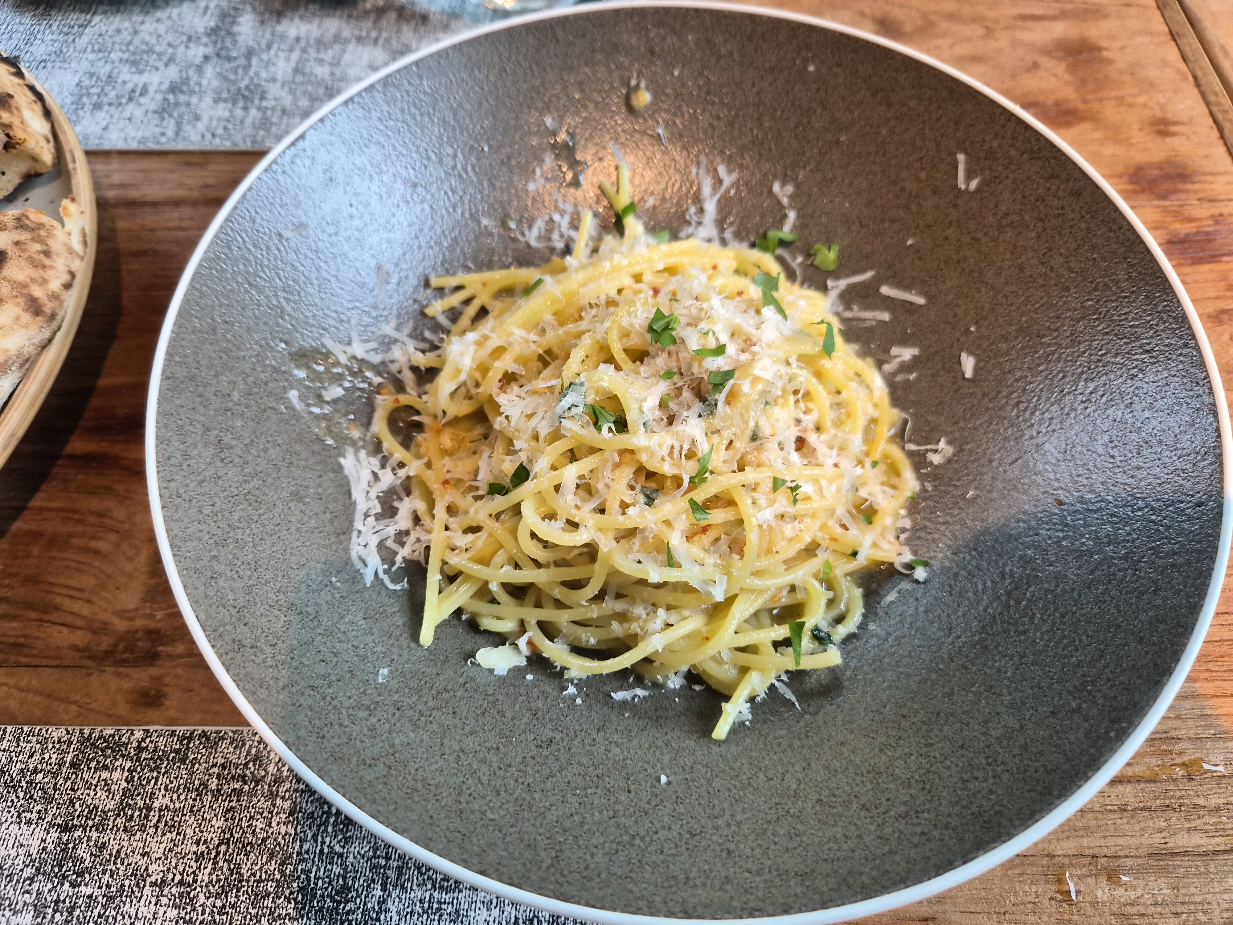 알리오올리오 파스타는 면이 약간 꼬들했어요.