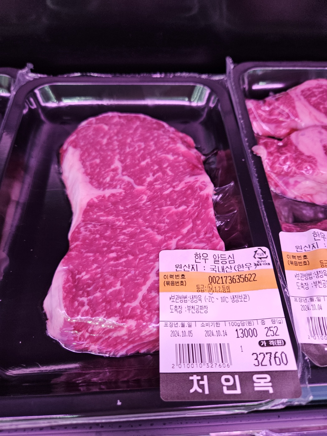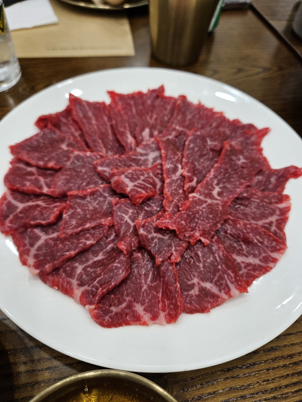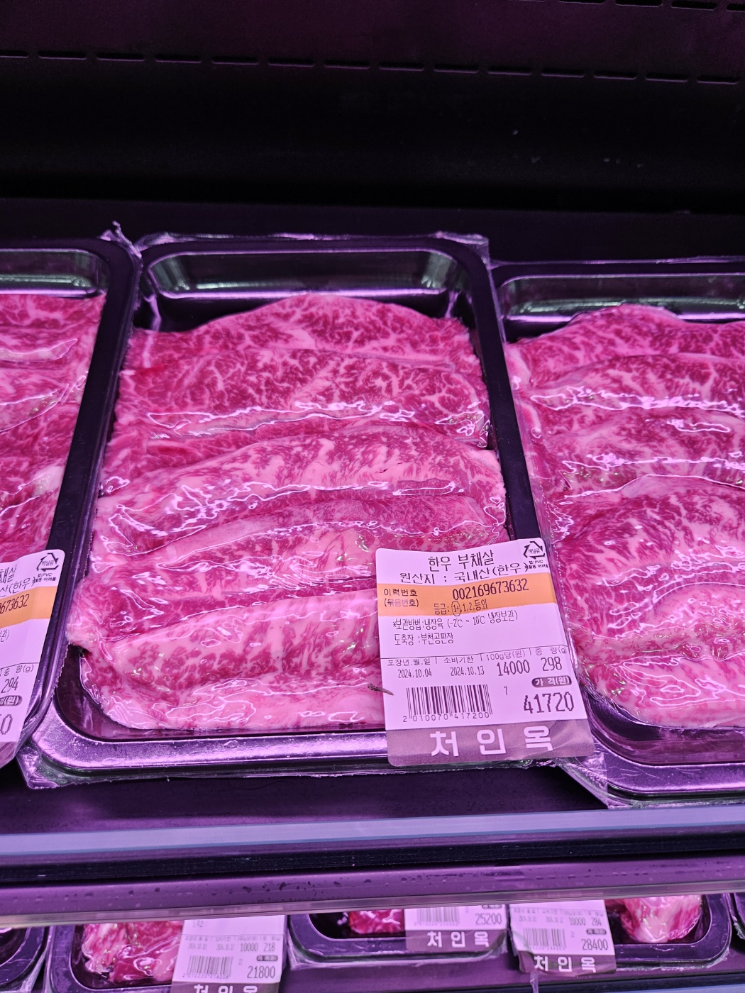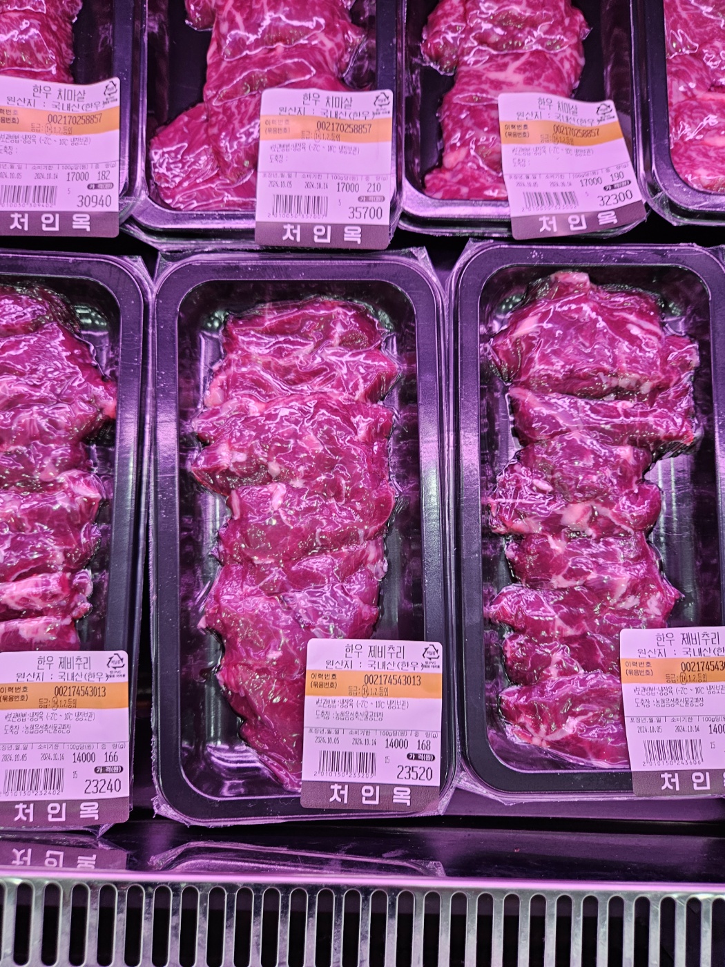 소고기는 등심, 갈비살, 치마살등 돼지고기보다 종류가 더 다양했어요.