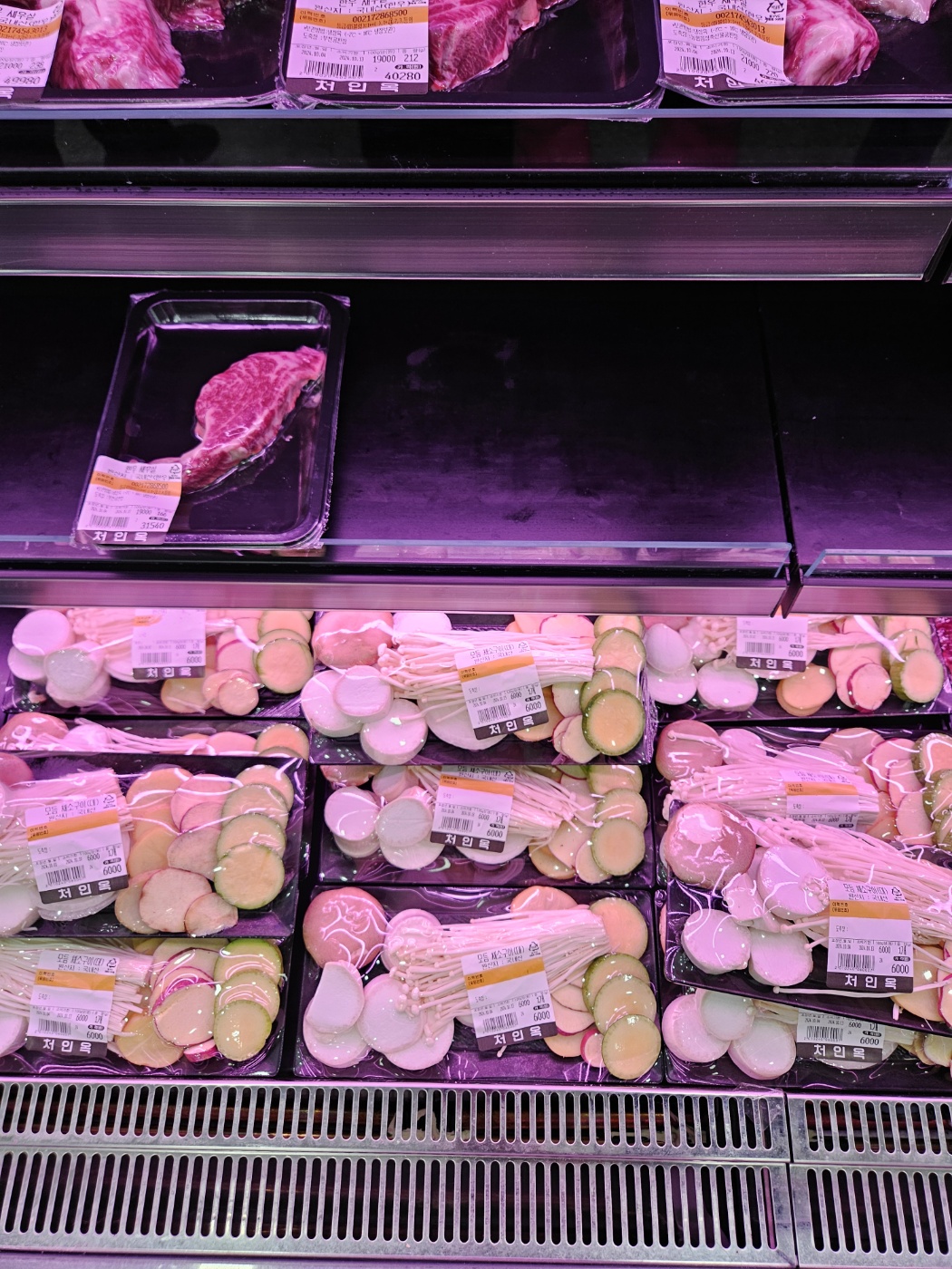 소고기는 등심, 갈비살, 치마살등 돼지고기보다 종류가 더 다양했어요.