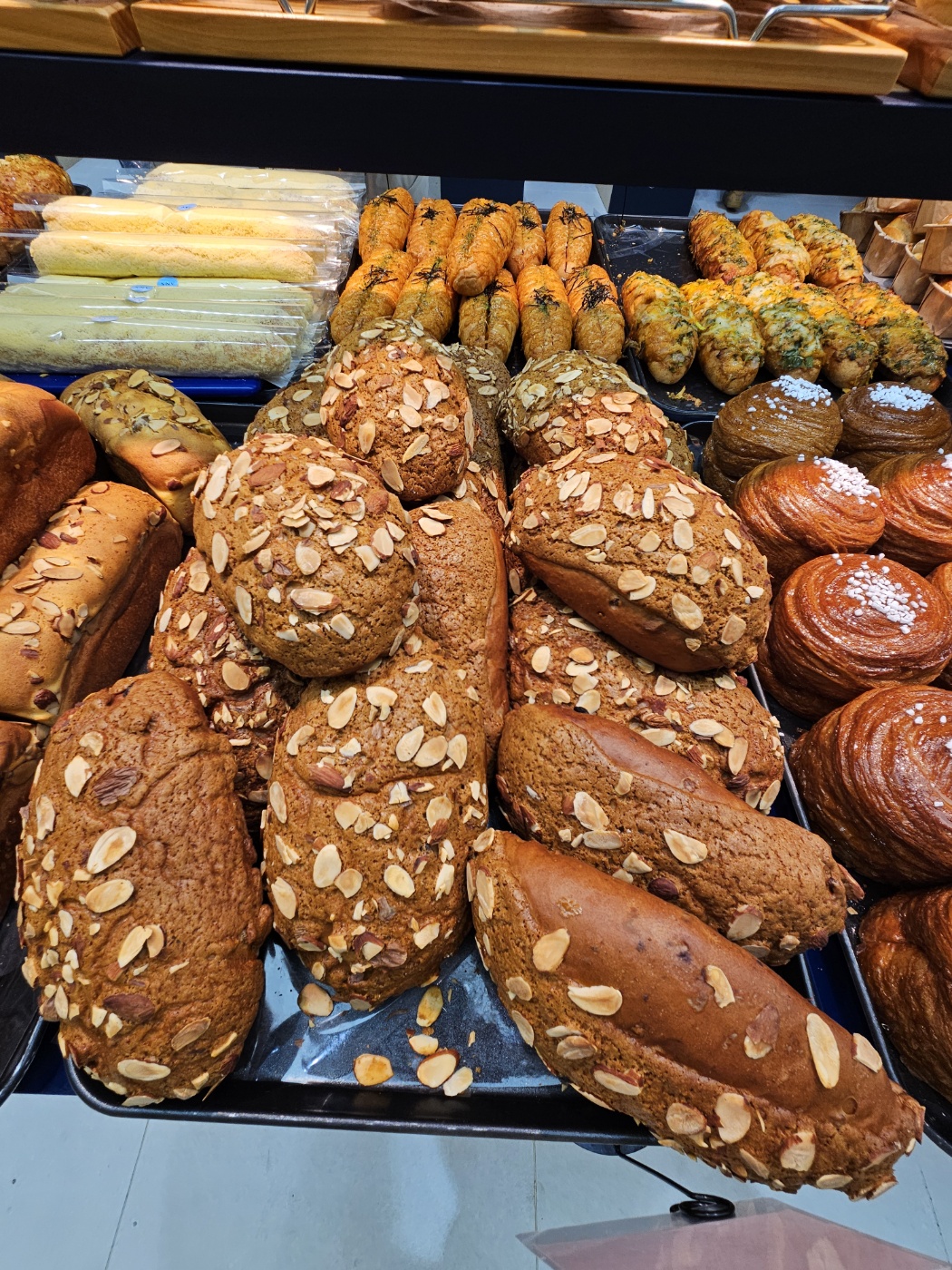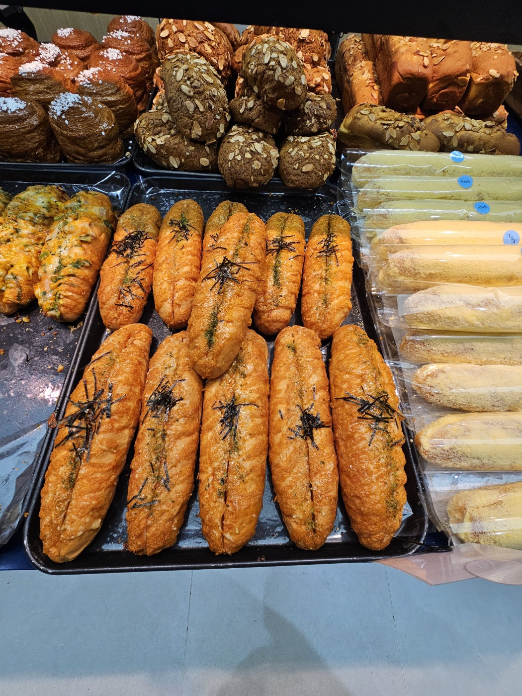 여러 가지 빵들이 정말 맛있게 진열되어 있었어요.