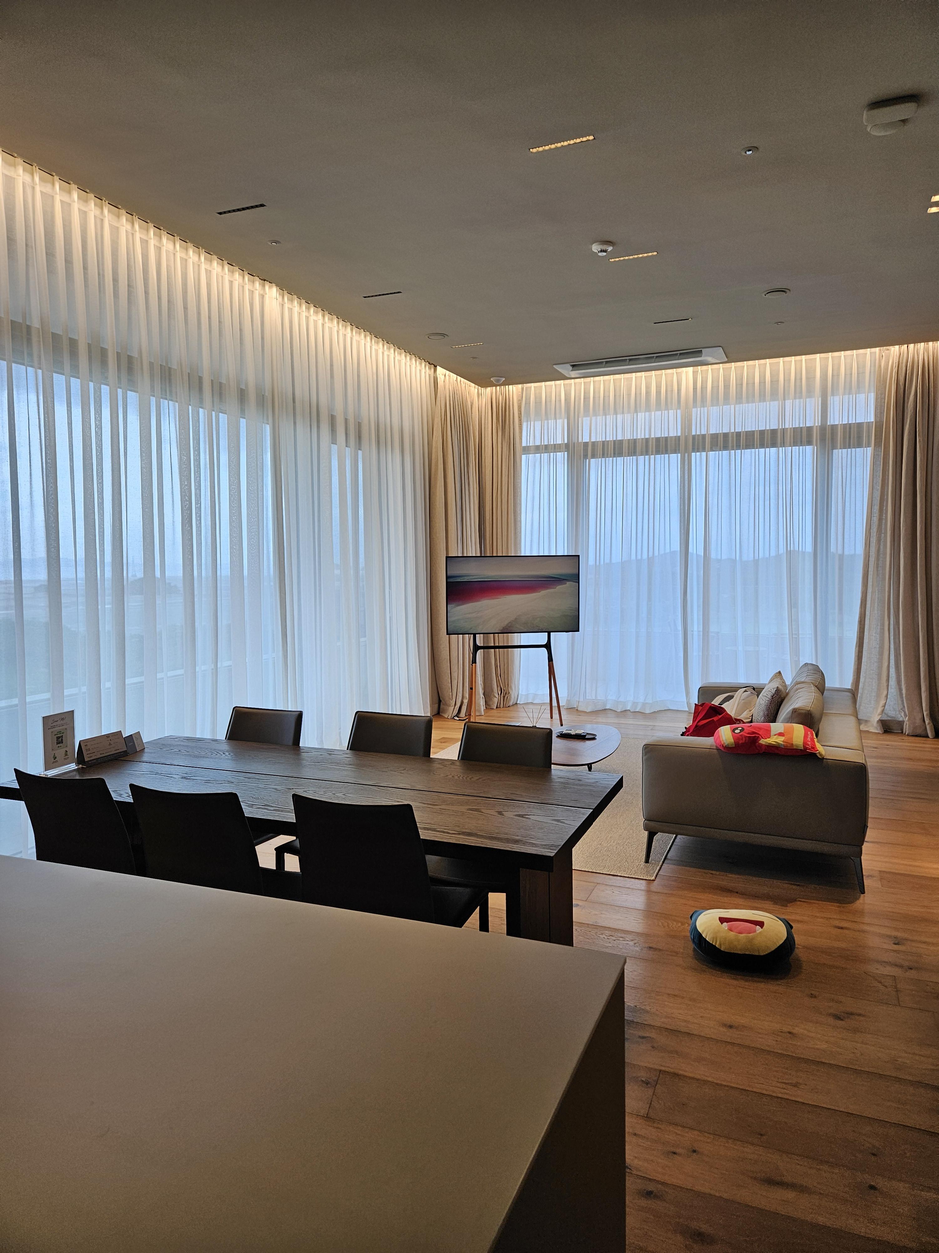 처음 들어왔을 때 커튼이 자동으로 열려서 아이들이 정말 좋아했고