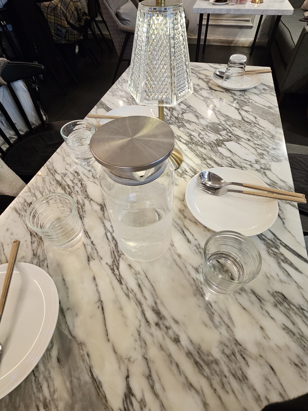 테이블이 대리석에 식기류가 깔끔했어요.