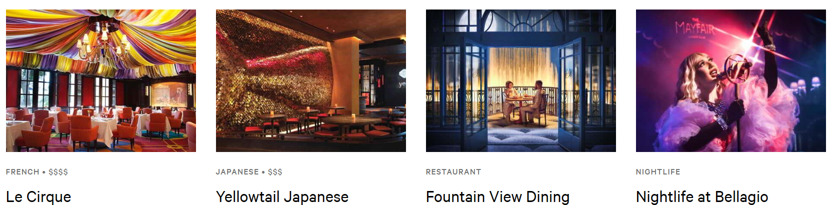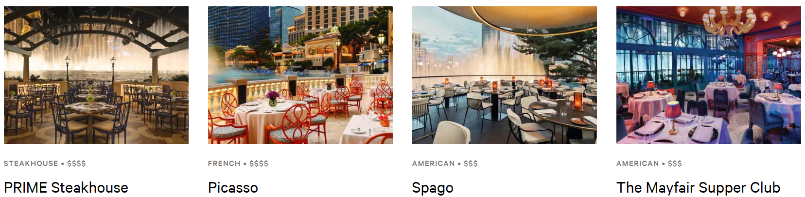 특히 분수료를 바라보며 식사를 할수 있는 Picasso와 Spago가 인기가 많습니다.