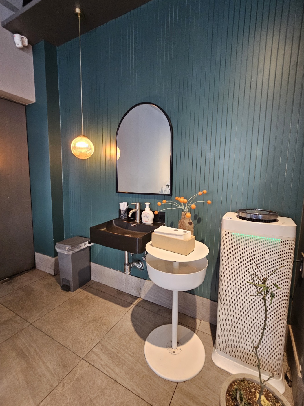 요즘은 식당에 손 씻는 곳이 있는데 트렌드인 것 같아요.