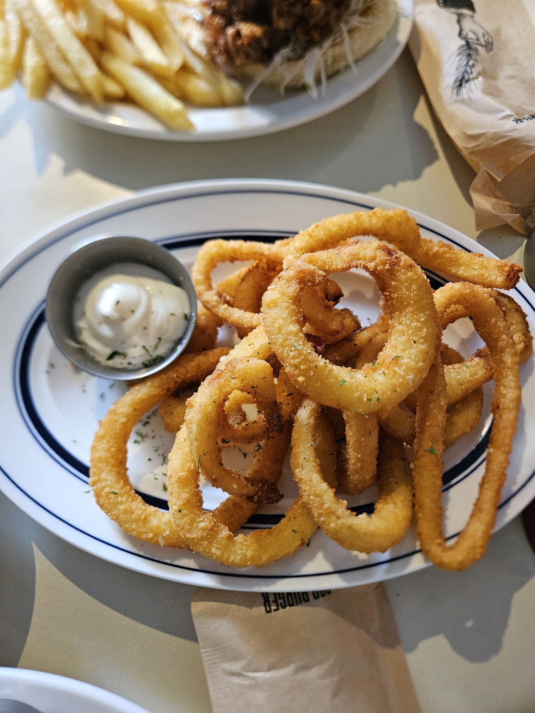 어니언링은 추가 했고 샐러드는 리뷰해서 무료로 받았어요.