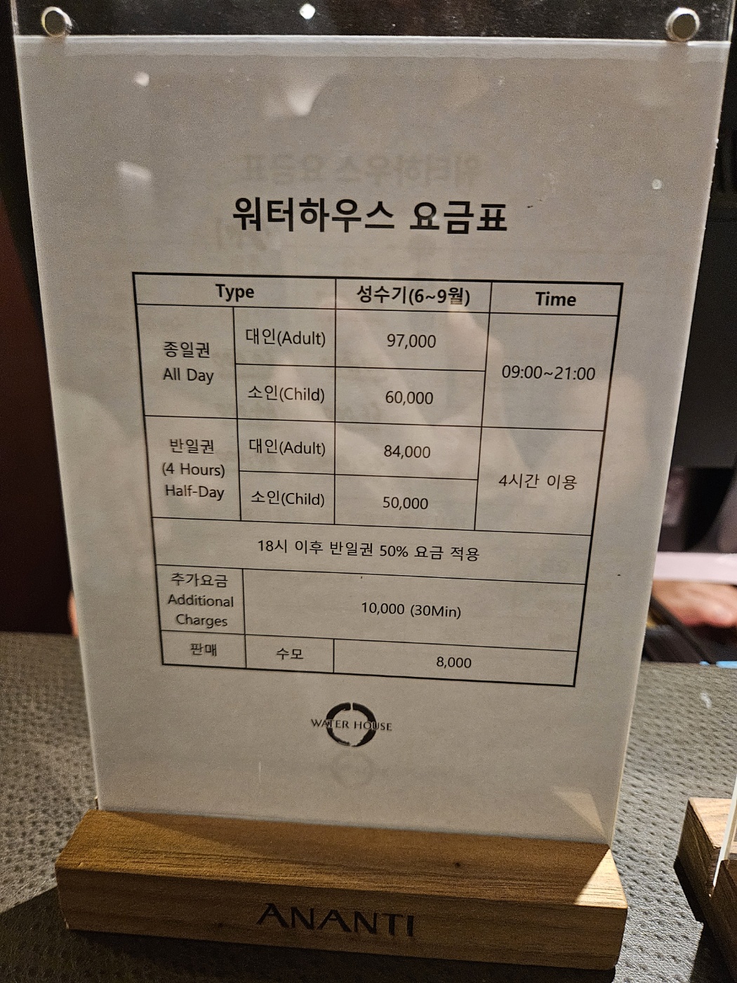워터하우스 이용요금은 절대 착하지 않더라구요.