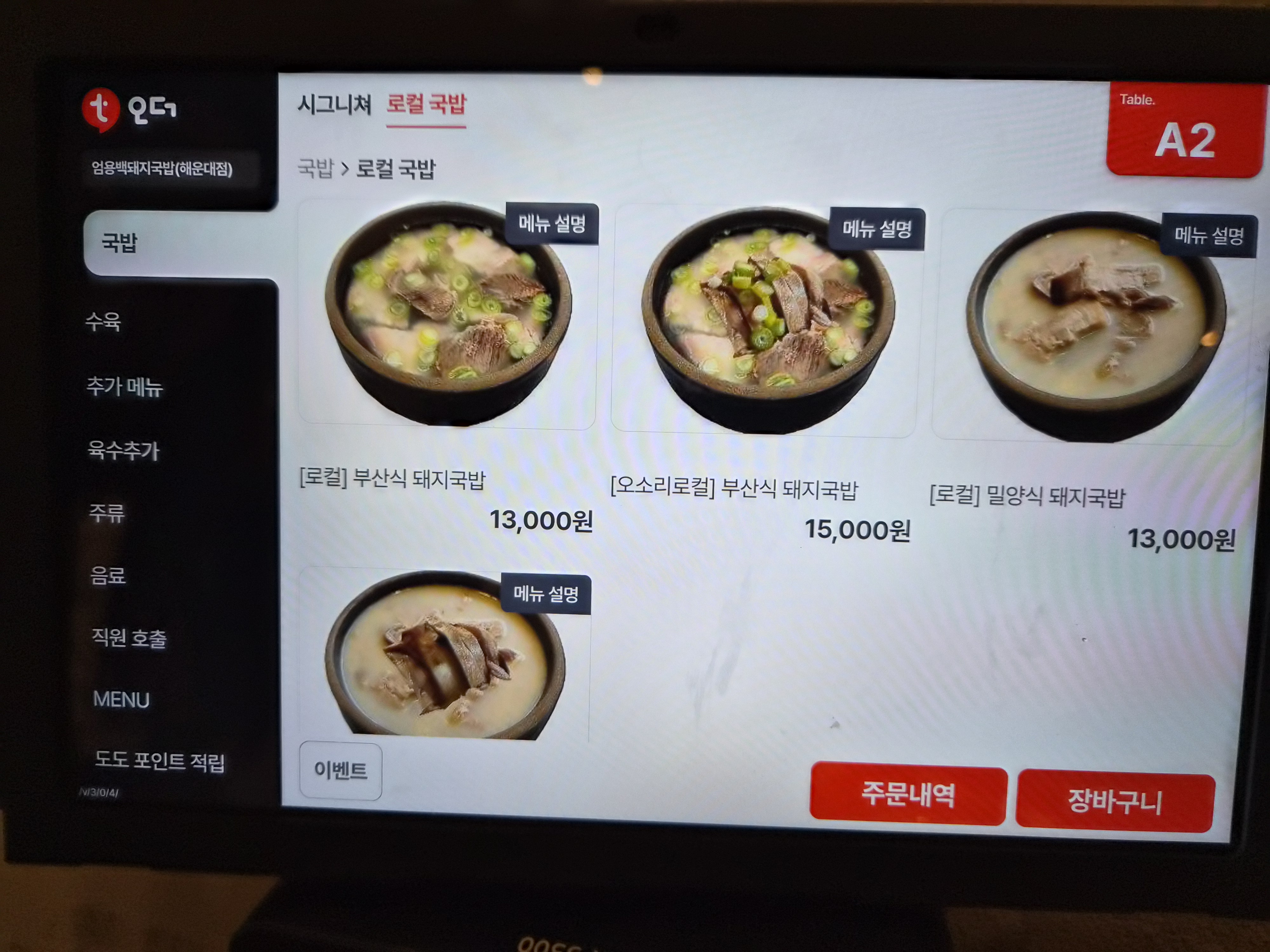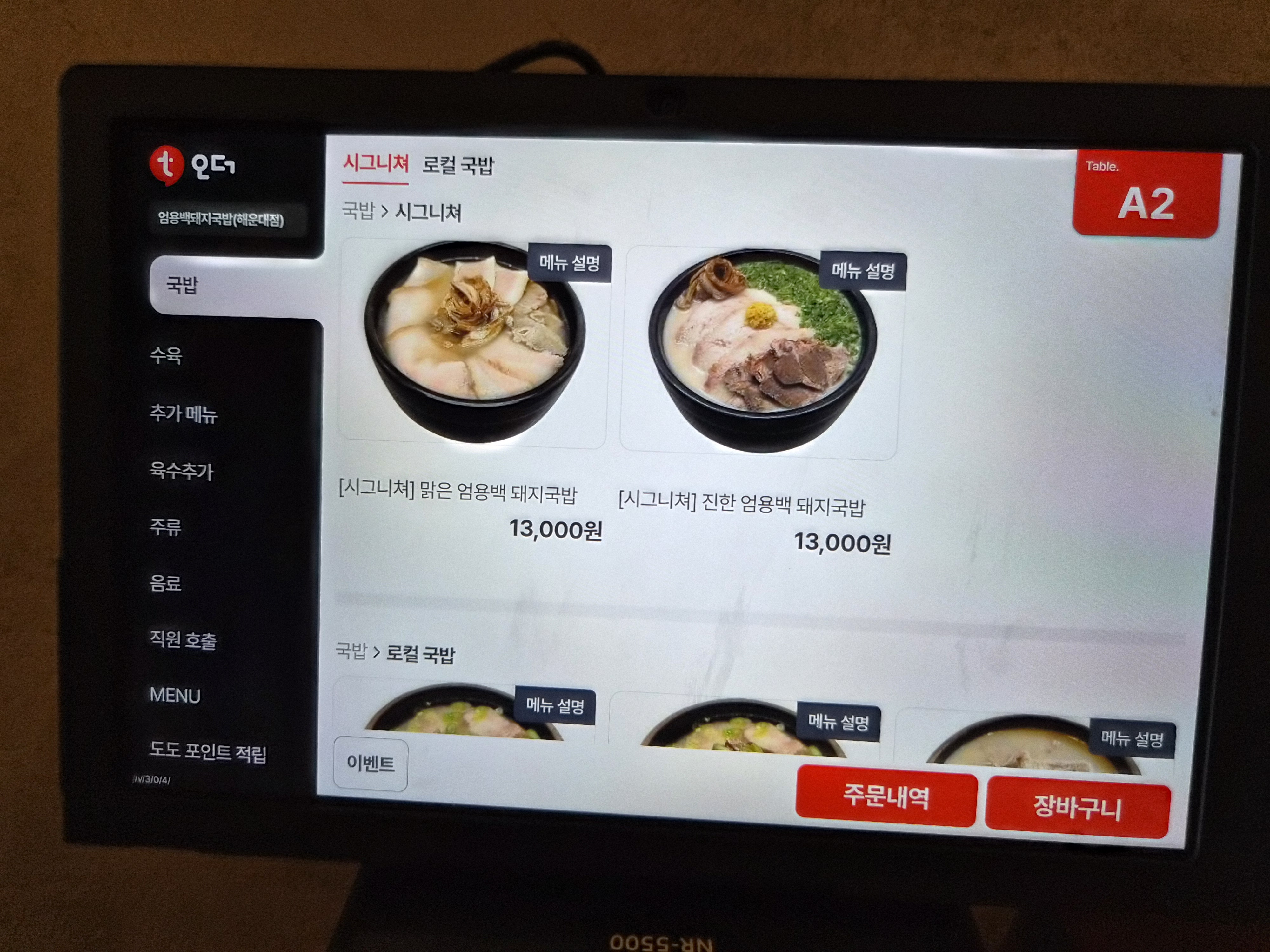 [시그니처 엄용백돼지국밥 2개, 가브리수육과 간장국수1개]