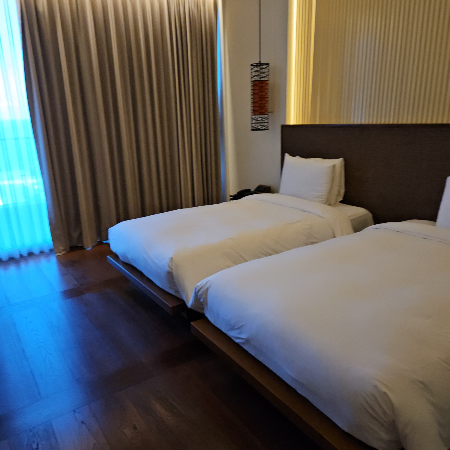 침대가 조금 작은 느낌인데 아이 둘과 자기에는 괜찮았습니다.