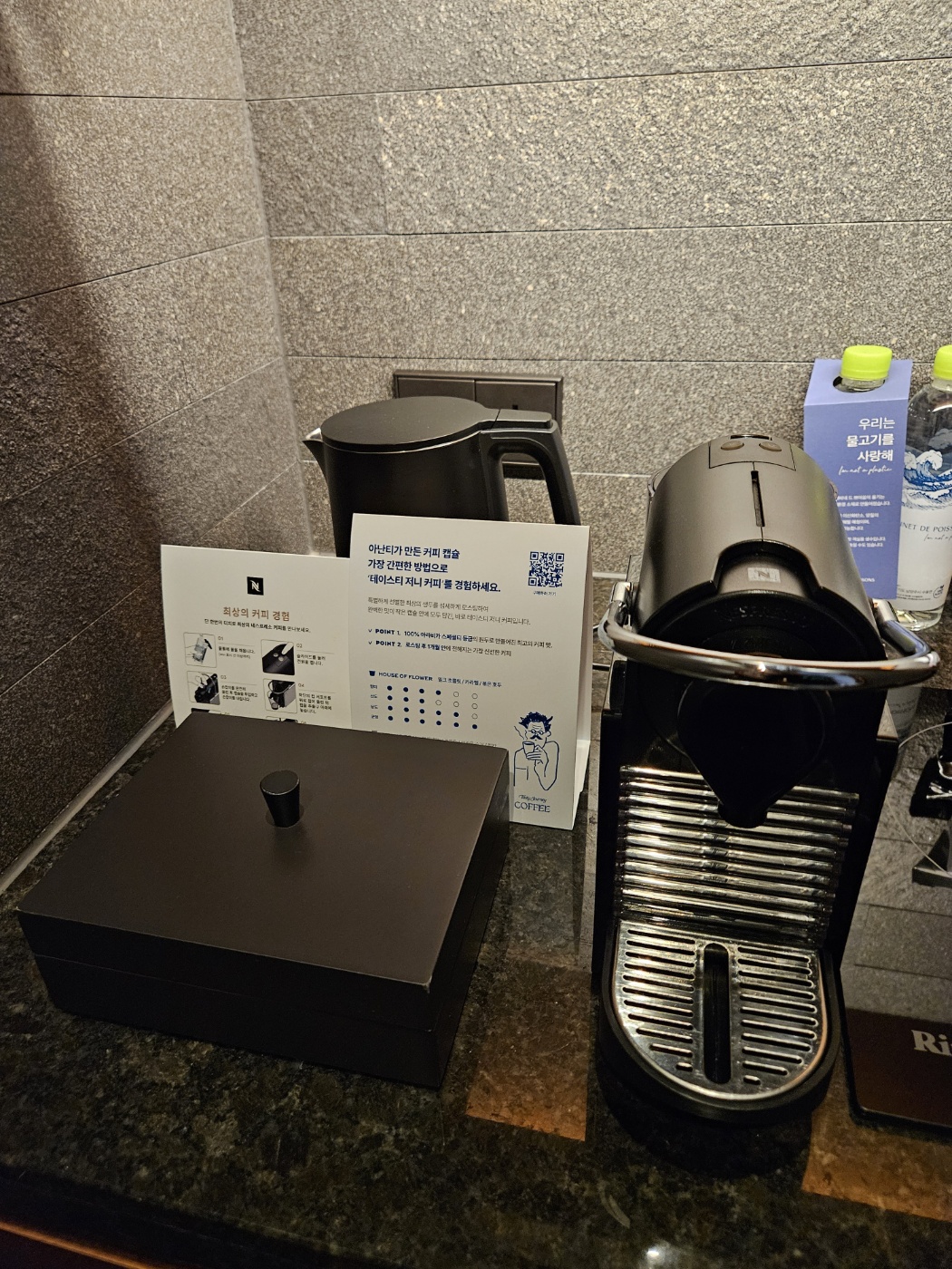 커피는 아난티 커피캡슐 매일 2개씩 주셨고 각종 과자랑 냉장고에 있는