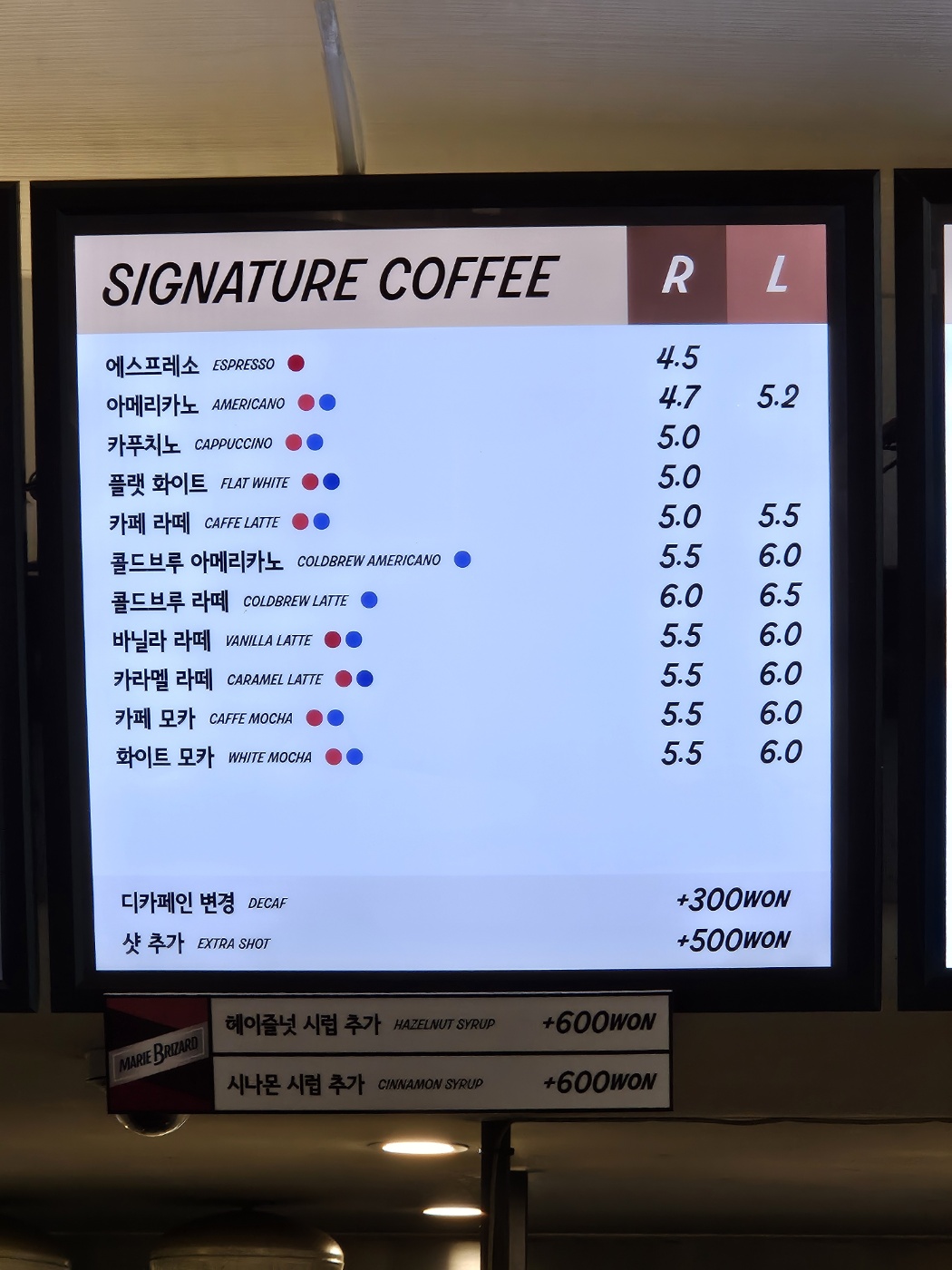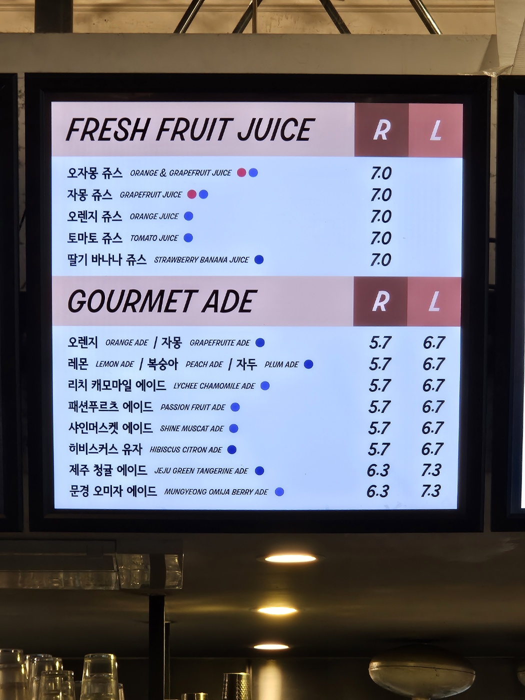 음료는 종류가 정말 다양해요. 주스, 커피, 스무디 등등