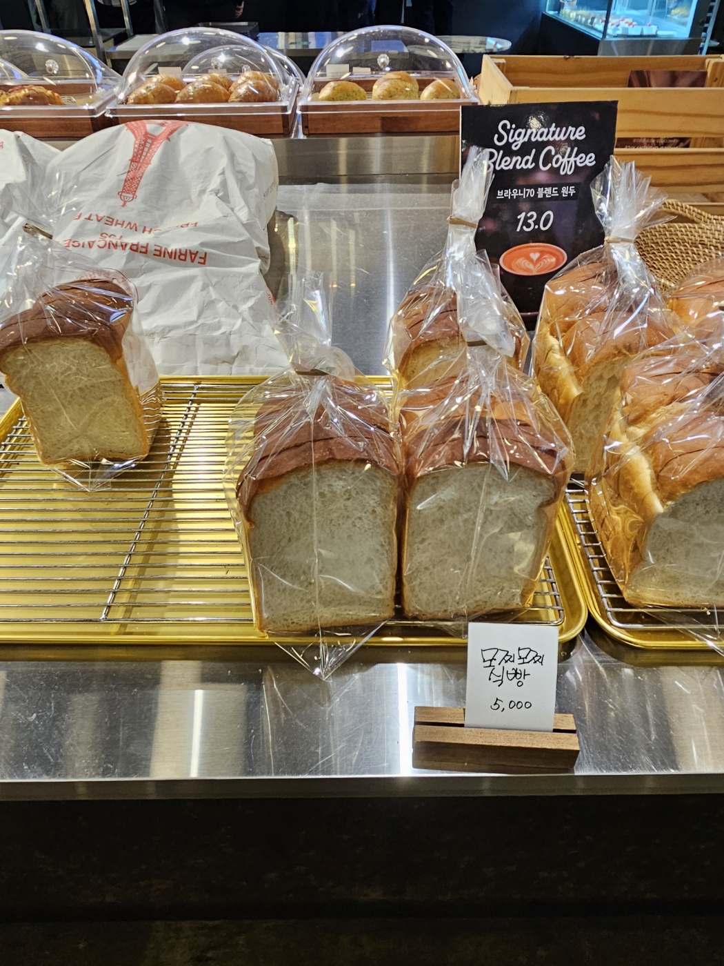 빵은 식빵하고 여러가지 소금빵만 있었어요.