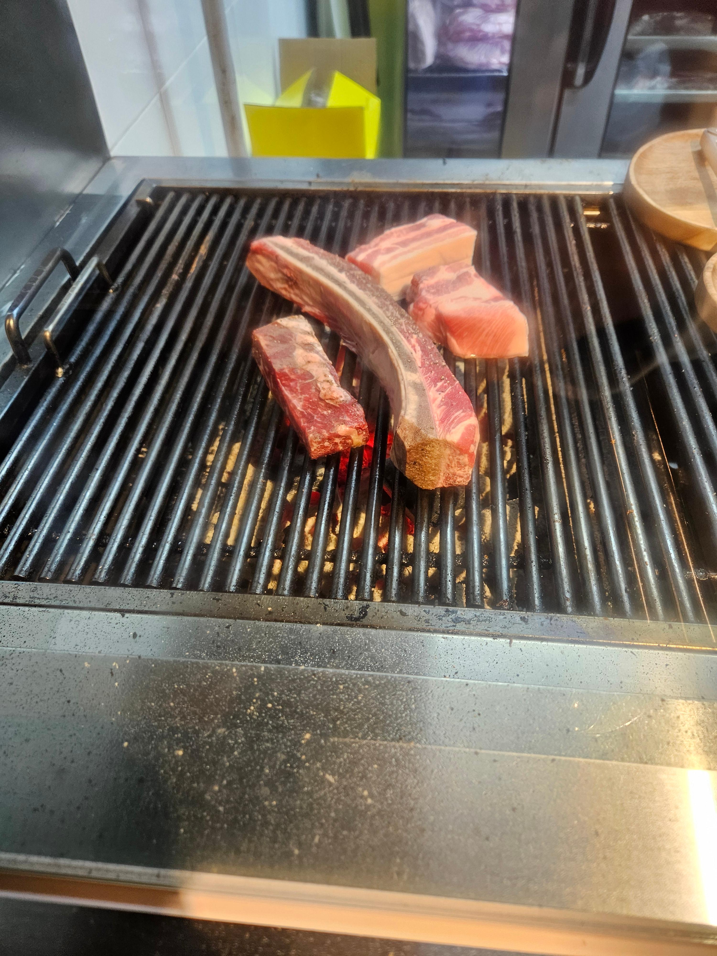 저희는 숯불로 선택했고 초벌한 고기를