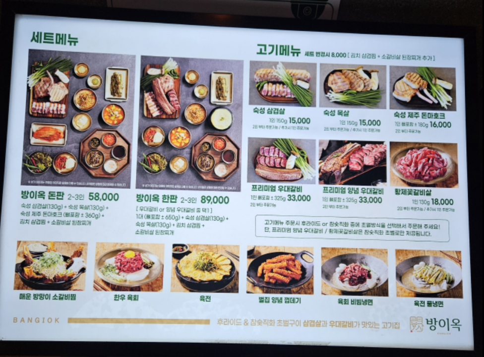 방이옥은 소고기와 돼지고기를 함께 파는 곳이에요.