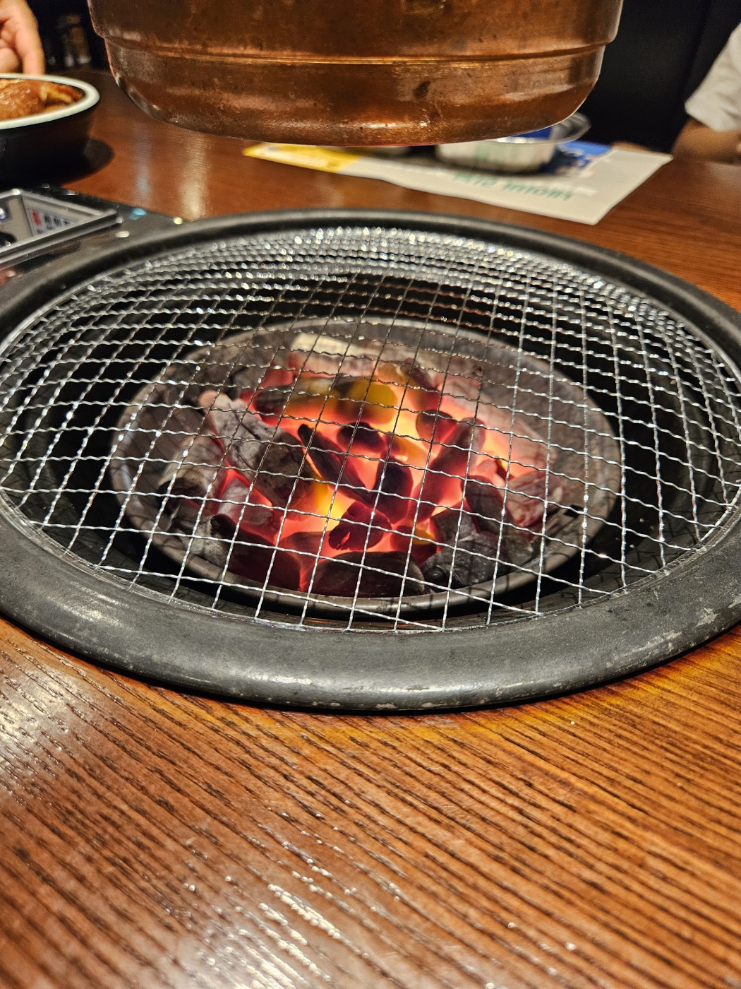 돼지고기도 숯불에 고기를 구워주셨어요.