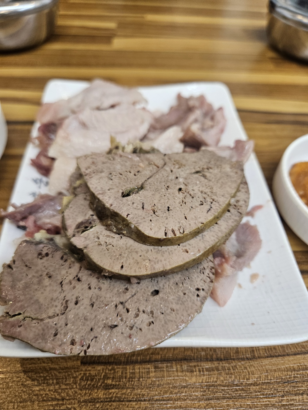정식으로 시켰던 간과 머리고기 에요.
