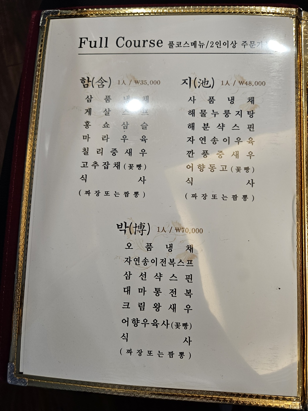풀코스는 35,000원, 48,000원, 70,000원 3가지가 있었어요.