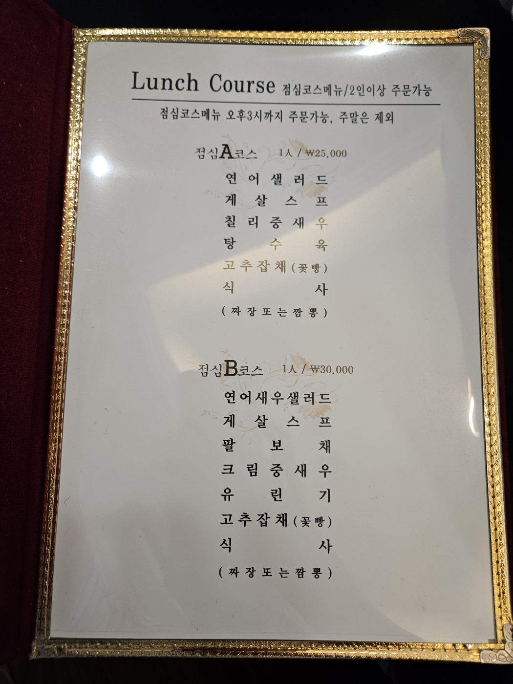 점심코스는 25,000원, 35,000원 2가지가 있었고