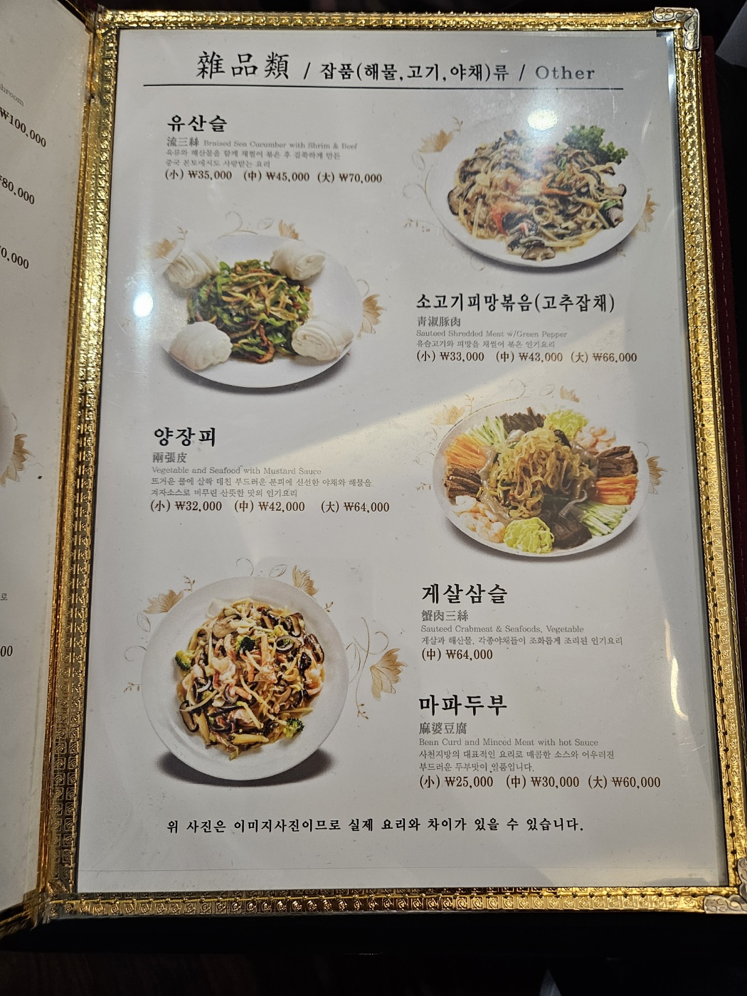그 외에 일반 중식당과 달리 메뉴가 엄청 많았어요.