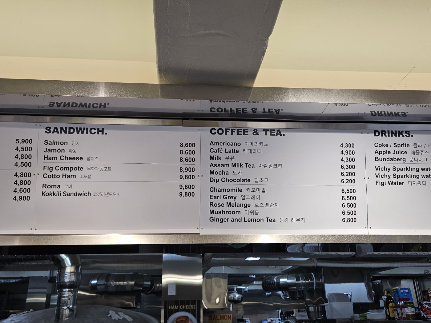 [호두크랜베리, 갈릭퐁당, 하몽샌드위치, 마레이카노, 카페라떼]