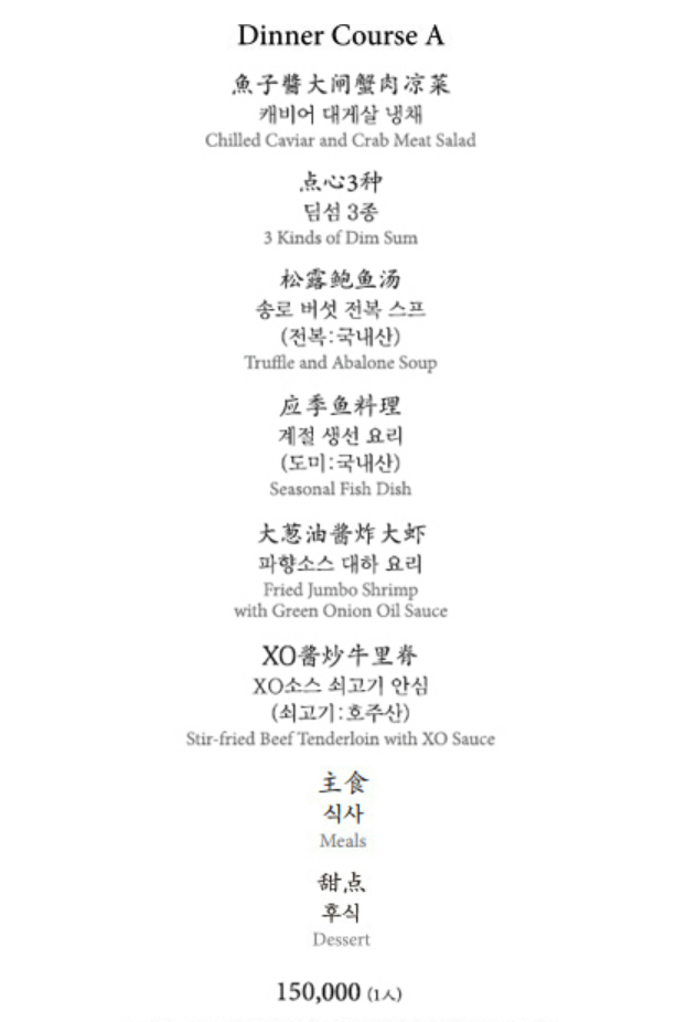 ✔️ 디너 : 90,000 / 100,000 / 120,000 / 150,000