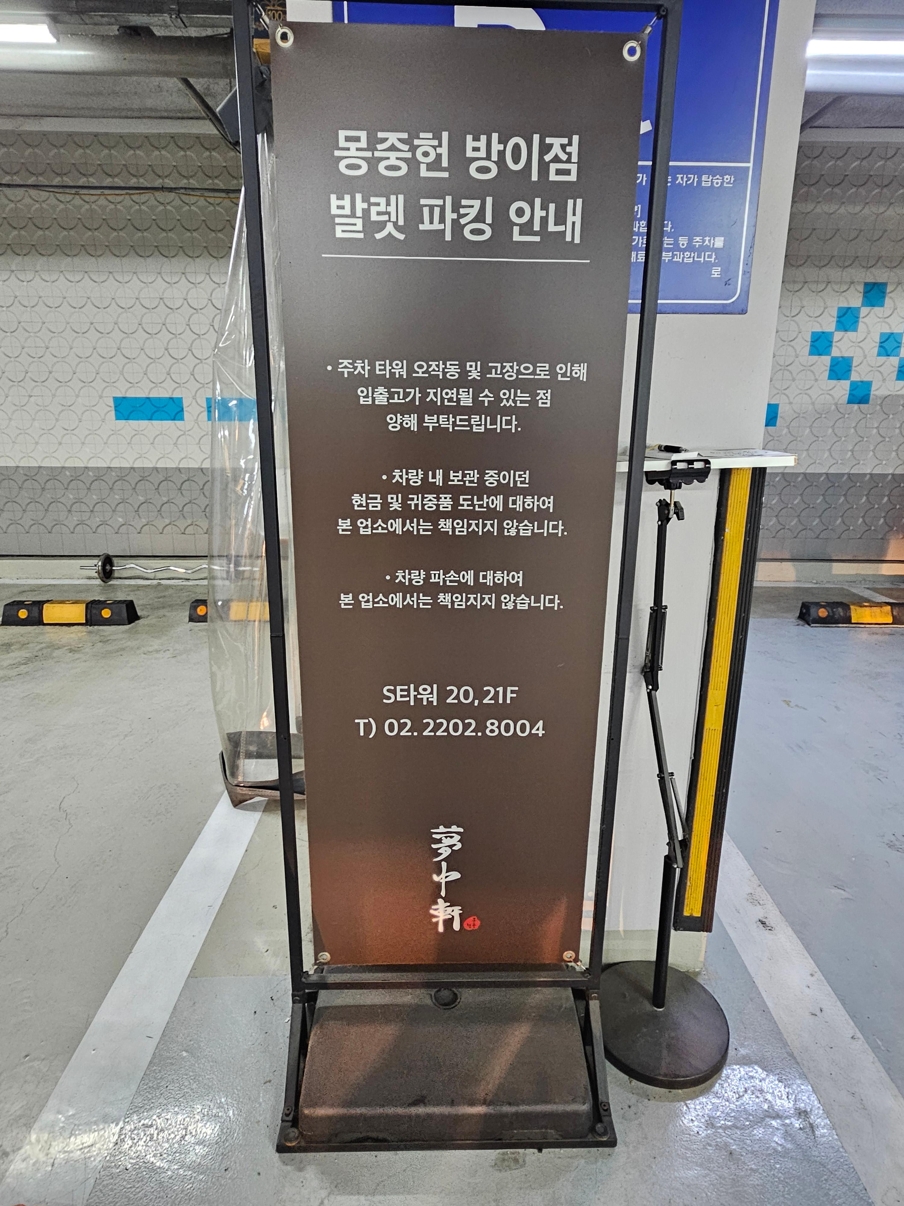 기계식 주차라 무조건 발렛을 맡기셔야 하구요.