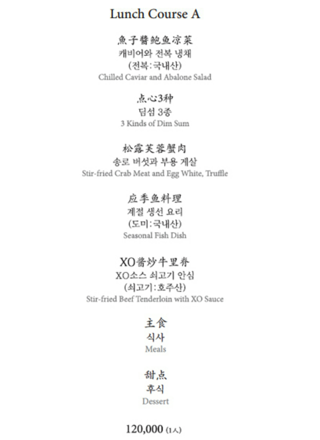 몽중헌은 코스와 요리 단품으로 구성되어 있는데