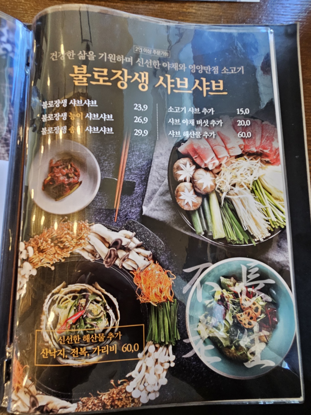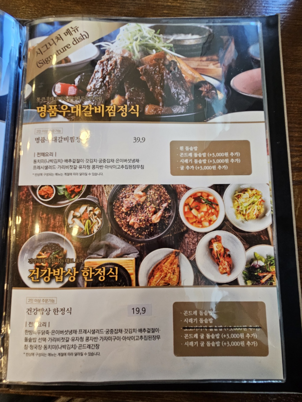 저희는 토종닭만수무강 해신탕 한 마리랑 우대갈비(소) 각각 하나 시켰어요.