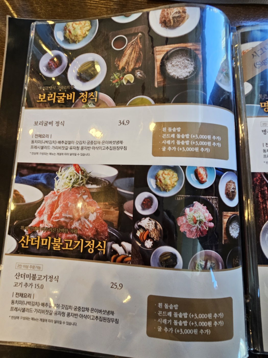 메뉴는 삼계탕이 메인인 것 같았고 불고기 정식, 곤드레 정식 등 각종 정식도 있었어요.