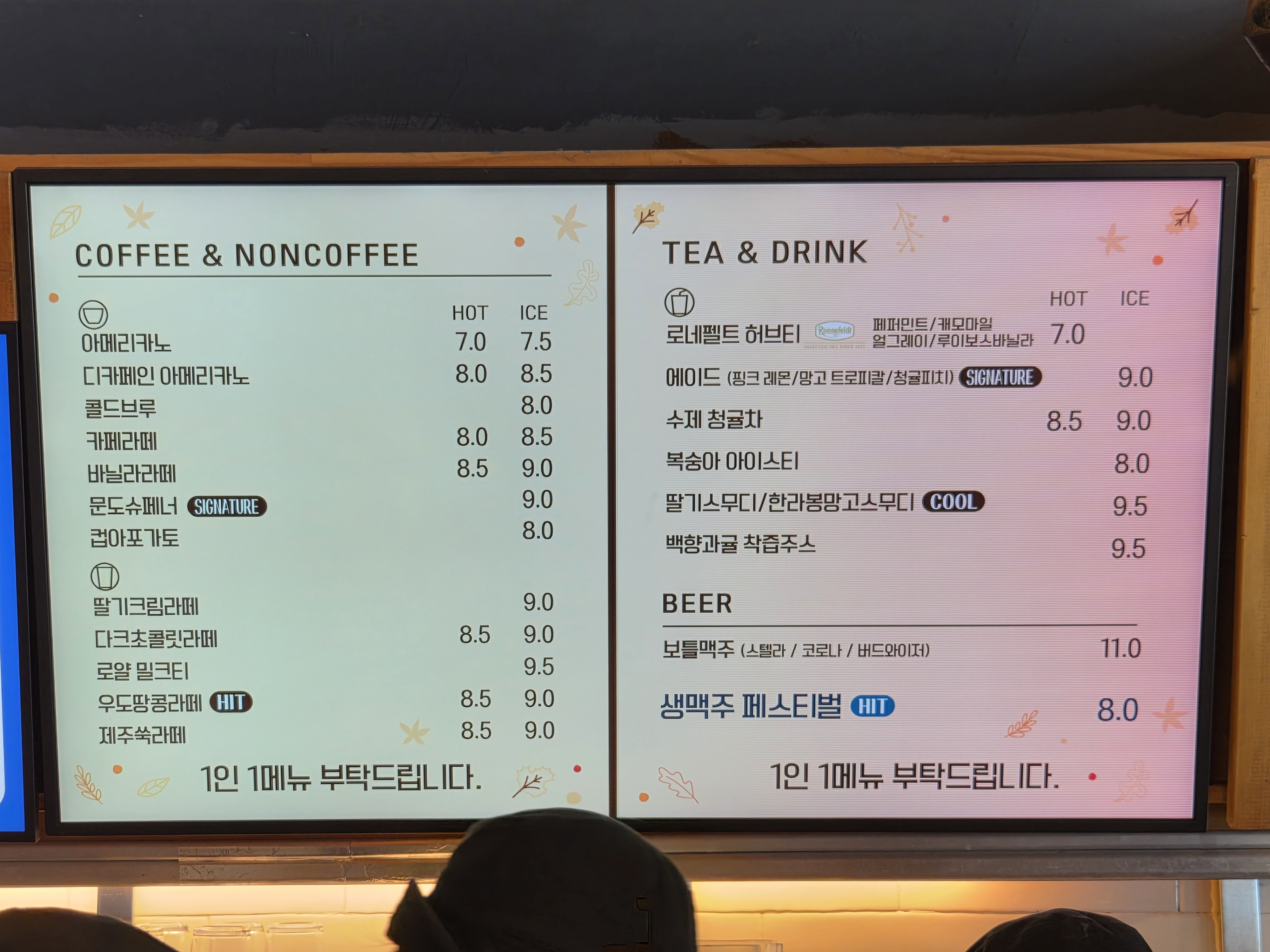 1층에는 주문하는 곳과